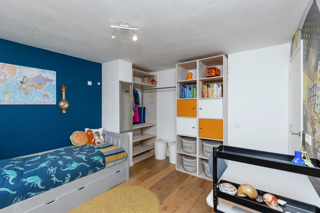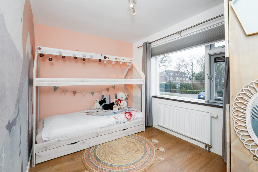 De twee slaapkamers zijn wat groter en bieden als kinderkamer voldoende ruimte om er naast slapen ook te spelen. Grote ramen maken deze kamers ook heerlijk licht.