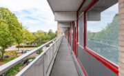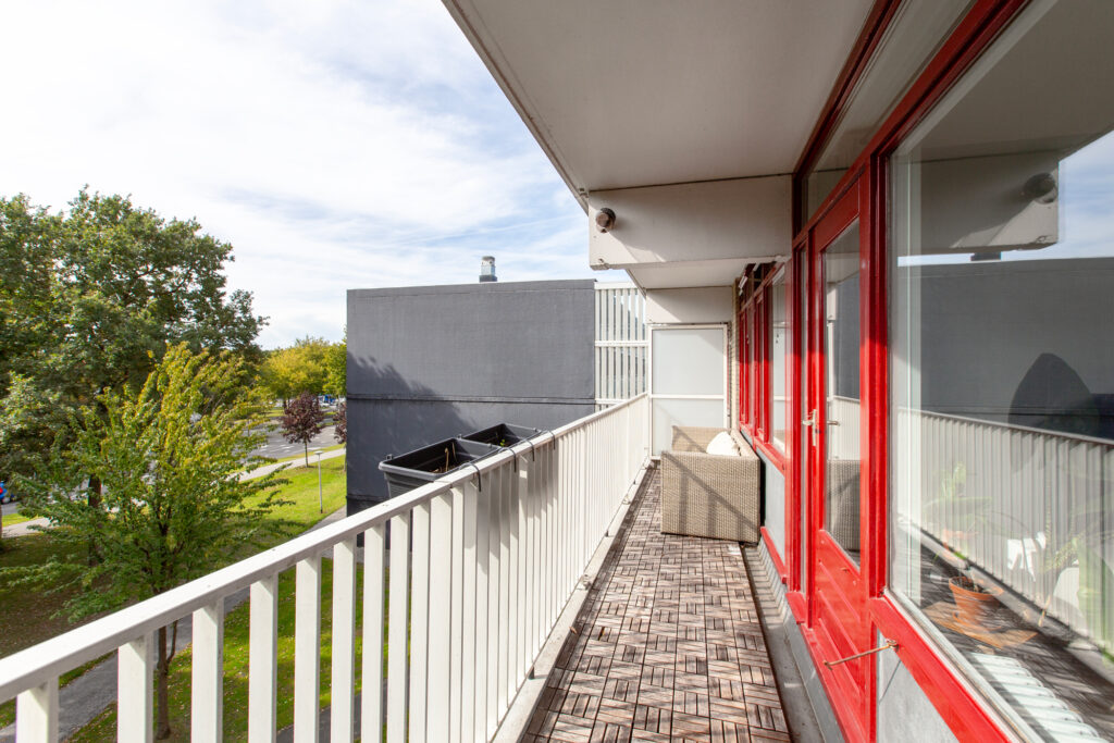 Het gevel brede balkon op het ZW is vanuit de woonkamer toegankelijk. Door de oppervlakte, het mooie groene uitzicht en de zonnige ligging kan je hier een mooie zit plek creëren en genieten.