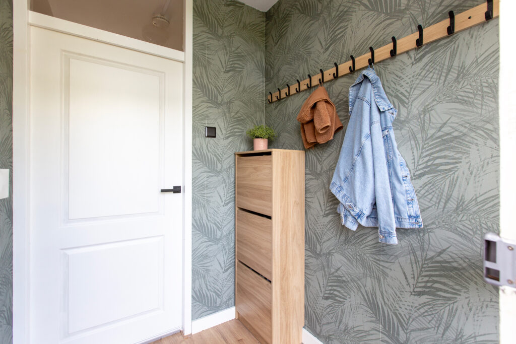 Overdekte galerij naar voordeur. Bij binnenkomst stap je de hal binnen met garderobe mogelijkheid en toegang tot de woonkamer.