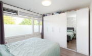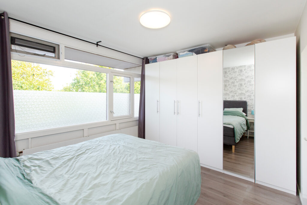 De 3 slaapkamers zijn allemaal toegankelijk vanuit de grote tussenhal, met aan de voorzijde de grootste slaapkamer. De andere 2 volwaardige slaapkamers zijn aan de achterzijde van het appartement te vinden. Alle 3 de kamers zijn voorzien van grote raampartijen met een ventilatierooster.