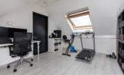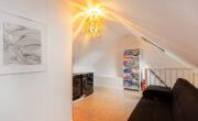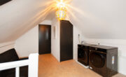 Zeer ruime overloop met aansluiting voor wasmachine, droger en veel opbergruimte onder de knieschotten. Toegang tot diepe kast met bergruimte, CV installatie, warmtewisselaar en toegang tot een ruime 3e slaapkamer. Met een andere indeling zou een extra kamer kunnen worden gecreëerd.