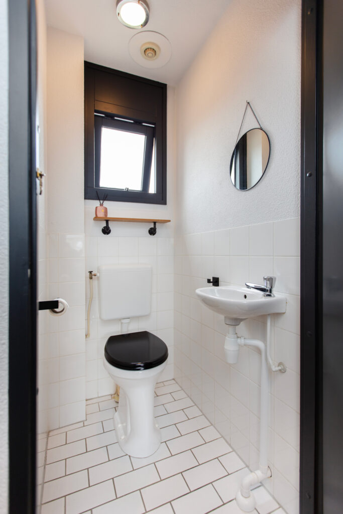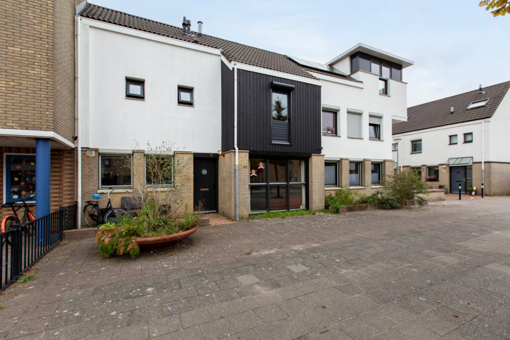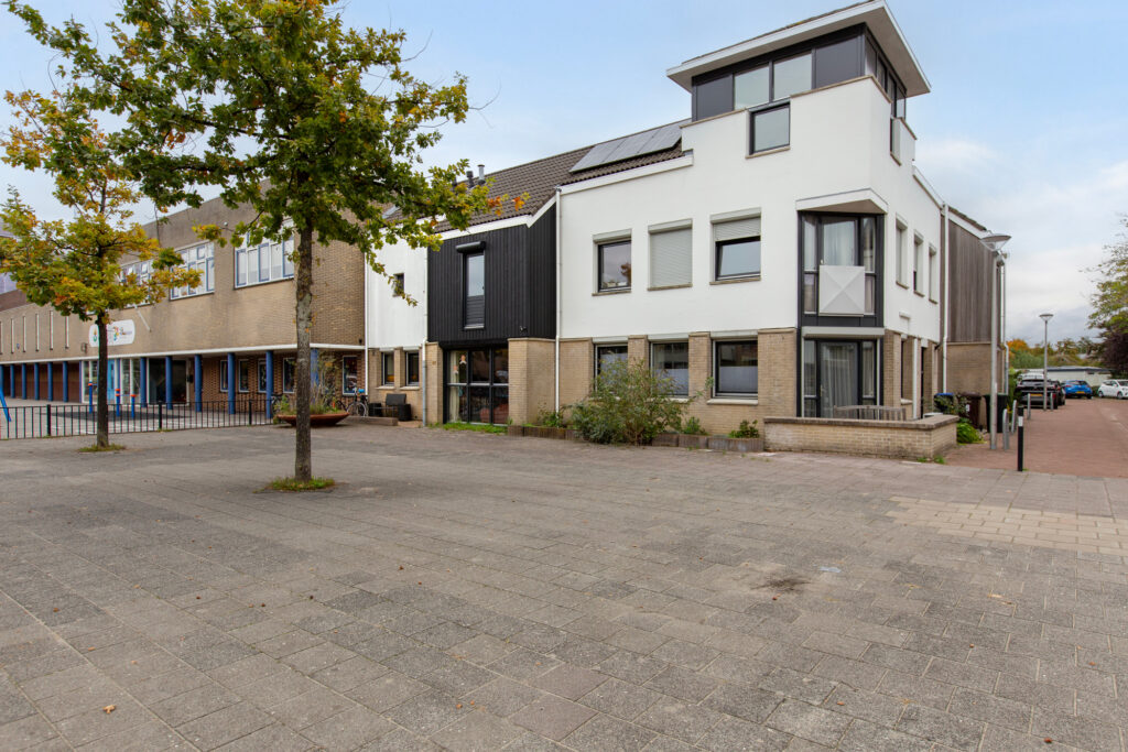 Na de voordeur kom je in een hal met garderobemogelijkheid en met toegang tot de woonkamer. De woonkamer is heerlijk licht dankzij een grote raampartij aan de voorzijde. Hier is voldoende mogelijkheid voor het creëren van een ruime zithoek met goed zicht op een autovrij plein. Een eethoek kan worden geplaatst bij de achtergevel met daarvandaan goed zicht op de achtertuin. Alle wanden zijn strak gestuukt en op de vloer ligt een nette taupe kleurige pvc vloer die naadloos is doorgetrokken naar hal en keuken. De keuken ligt aan de voorzijde van de woning en beschikt over alle benodigde inbouwapparatuur zoals een zwarte mengkraan met dubbele spoelbak, een oven, een koelkast, een vaatwasmachine en een inductie kookplaat met afzuigkap. Dankzij de vele witte keukenkastjes is er voldoende opbergruimte. Een 2e hal biedt toegang tot bijkeuken, trap naar de 1e en toiletruimte. De toiletruimte is wit betegeld en beschikt over een fonteintje, zwarte accessoires en een staand toilet met voldoende beenruimte. De bijkeuken is ruim en ideaal voor het opbergen van voorraad en/of spullen. Vanuit hier is de achtertuin bereikbaar. Deze ligt op het zuid oosten en is volledig betegeld. De tuin heeft een speelse vorm en biedt genoeg ruimte voor het realiseren van meerdere zithoeken. Parkeren is gratis en kan in de wijk, bereikbaar via het achterom.