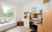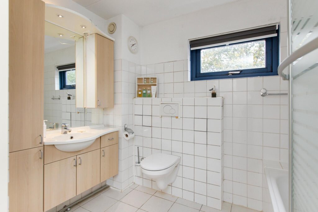 Via de overloop bereikt u 3 slaapkamers en de badkamer. De ouderslaapkamer ligt aan de achterzijde van de woning en beschikt over voldoende ruimte voor een groot twee persoons bed en een kledingkast. De badruimte is eenvoudig maar heeft dankzij de afmeting veel potentie. Thans treft u hier een ligbad met douche, 2e toilet, wastafel en wastafelmeubel in de kleurstelling licht bruin.