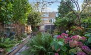 De tuin is te bereiken vanuit de uitbouw of buitenom via het achterom. Het terras ligt op het niveau van de woonkamer net boven het souterrain. De tuin is door middel van een klein trapje te bereiken. De tuin is heerlijk diep, ligt op het zonnige zuidoosten, is grotendeels bestaat en beschikt over diverse groene borders.